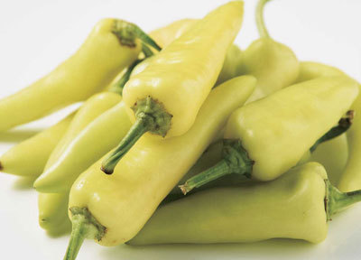 糖調唐辛子は、韓国の古都・全州(チョンジュ)で生まれた新品種の野菜で、辛みのない唐辛子です。一般の唐辛子よりも2~3倍は大きく、肉厚でふっくらとした形をしています。特有のサクッとした食感と味はパプリカに近く、色みは他の野菜にない萌黄色、春先に萌え出る若葉のような黄緑色が特徴的です。
