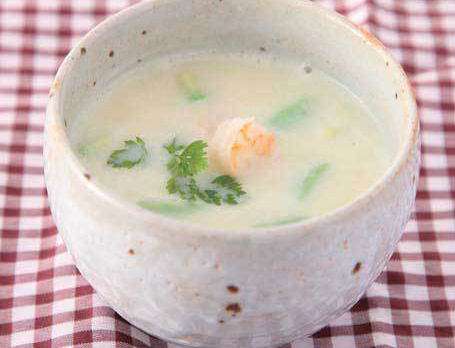 - 2.に牛乳を加えてミキサーにかける。味見をして足りなければ粗塩、こしょうで味を整える。