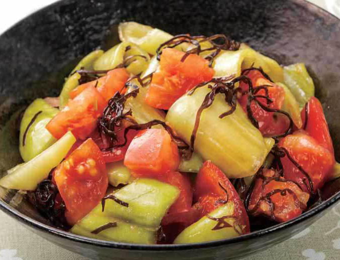 - 糖調唐辛子は乱切りにして、塩昆布と一緒にビニール袋に入れてよくもむ。